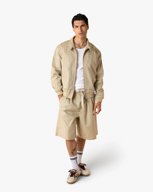 IZZUE - شورت رذاذ ديستريس باللون البيج